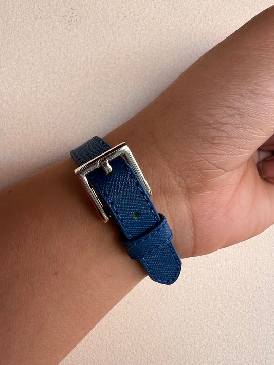 Brazalete Prada Cuerito Azul Logo Silver