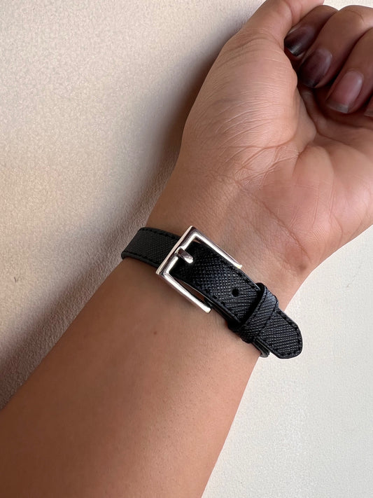 Brazalete Prada Cuerito Negro Logo Grande Silver