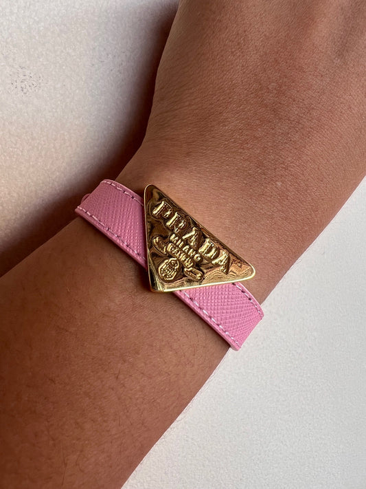 Brazalete Prada Cuerito Rosa Logo Grande Gold