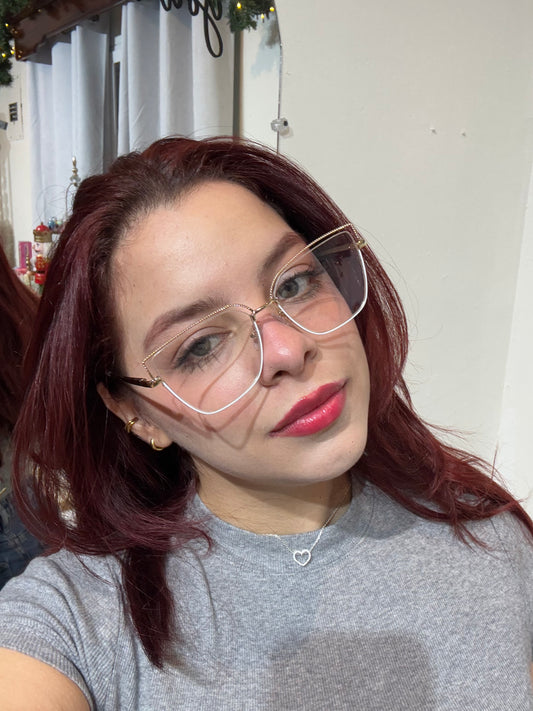 Lentes Cat Eye Doble Gold y Esquinas Blancas