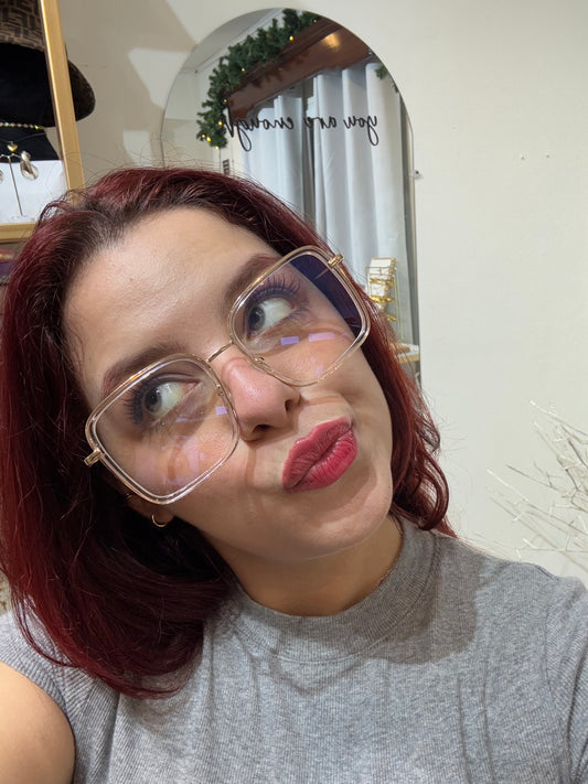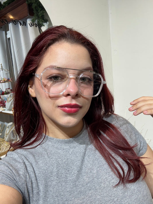 Lentes Cuadrados Clear con Detalles Gold