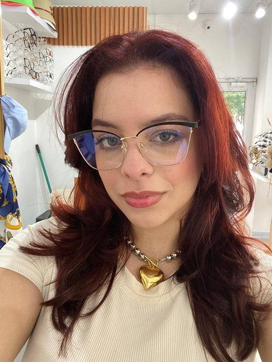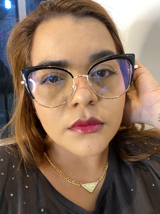 Lentes Cat Eye Negro Mitad con gold