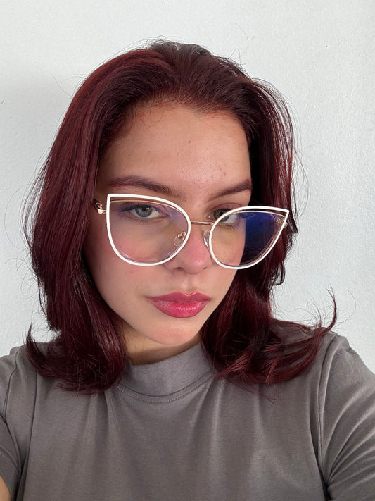 Lentes Cat Eye Doble Marco Gold y Blanco